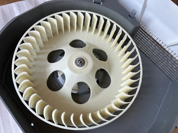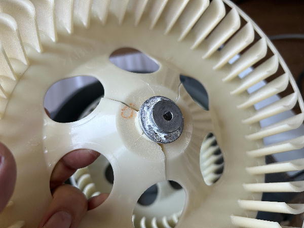 本体を分解してみると、ファン部に亀裂が入り壊れていました。