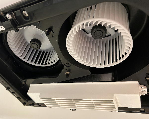 我が家の機器は、洗面所の換気も行えるタイプですのでファンが2個付いています。