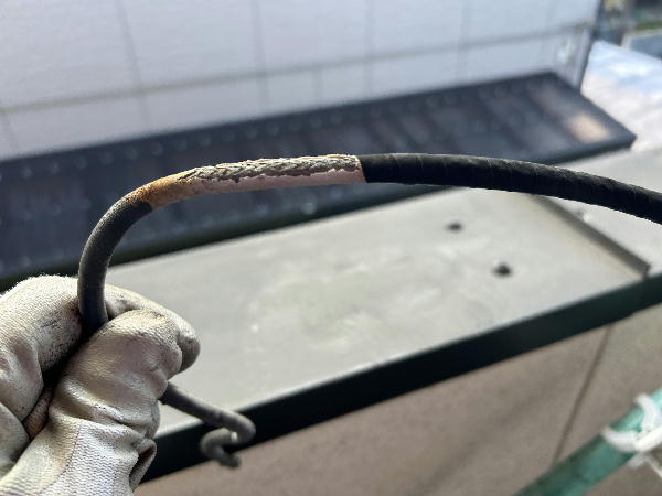 屋根の上のケーブルが劣化して機能を果たしていません。