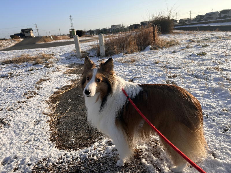 久々の雪です、ワンちゃんと朝の散歩。 2026年2月9日 最終更新日時 : 2026年2月9日 teruo yabuta 昨日はこちら倉敷もうっすら白い世界になりました。 朝は風も冷たく外気温も-2℃と低いです。 “もみじ”にとっては初めての雪かも? 陽が昇ってくると暖かく感じます。